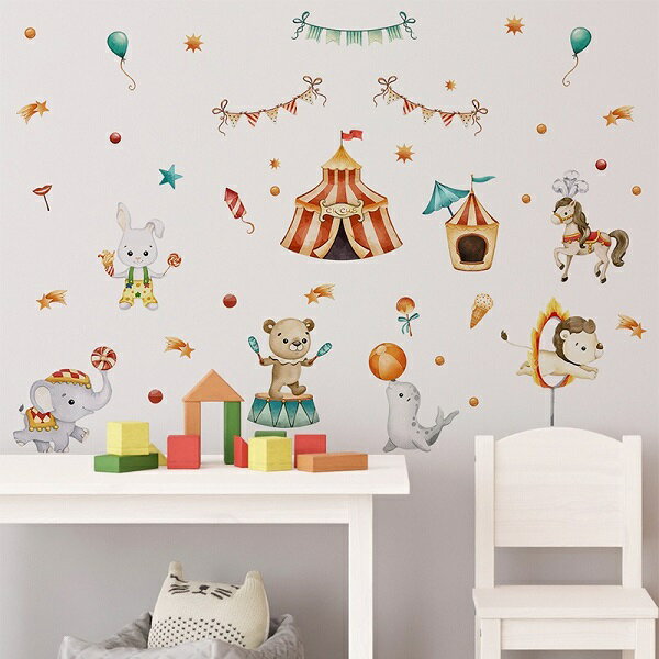 ウォールステッカー おしゃれ 動物 子供部屋 誕生日 子供 サーカス ステッカー トイレ キッチン 賃貸 ウォールシール ぞう かわいい 玄関 階段 はがせる 幼児 ベビー 旗 フラッグ 大きい 風船 熊 壁紙 馬 うさぎ ライオン パーティー 玉 ボール お菓子 バースディー アシカ