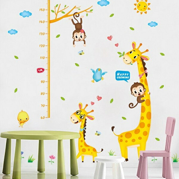 ウォールステッカー 身長計 きりん 動物 子供部屋 こども部屋 ベビー 誕生日 はがせる 賃貸 黄色 身長 男の子 女の子 かわいい 大きい シール 麒麟 エキゾチックアニマル ステッカー 壁紙 キッズルーム 猿 雲 鳥 幼稚園 託児所 保育所 知育 インテリア 幼児 玄関 リビング