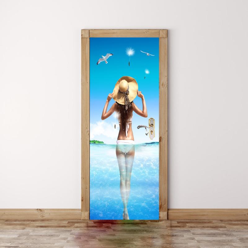 ドアシート レディース 3D 自己粘着 PVC製 貼るだけ簡単 剥がせる おしゃれな女性の後ろ姿 ウォールステッカー 寝室 リビング 模様替え デコレーション