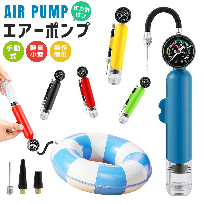 レビュー投稿&報告で後日プレゼントをゲット!!詳しくはこちら商品詳細■商品名:空気圧計付きエアーポンプ■カラー:ブラック、レッド、イエロー、ブルー、グリーン■本体重量:約125g■サイズ:(約)20cm×4.5cm×4.1cm■素材:ABS■測定圧力範囲:〜20PSi/〜1.4bar■商品内容:ポンプ本体×1、空気針×2、エアーノズル×2、フレキシブルホース×1※ご注意事項※自転車等のタイヤの空気入れには適していません。※空気の入れ過ぎにご注意ください。※空気を入れる用途以外に使用しないでください。※お使いのモニターの発色具合によって、実際のものと色が異なる場合がございます。※手動測定のため、製品サイズには許容誤差があります。※製造時期によりデザインや仕様に若干の変更がある場合がございます。予めご了承ください。※輸入品の為、多少のキズ、汚れ、塗装ムラ等がある場合がございますが、お気にされる方はご注文お控え下さい。関連キーワードボール空気入れ エアーポンプ ボールポンプ 軽量 小型 空気入れ 操作簡単 オシャレ 圧力計付き 気圧計付き 利便性 携帯性 持ち運びやすい 気圧計付きエアーポンプ イエロー ブラック レッド ブルー グリーン ボール用 気圧計測 バスケットボール サッカーボール 空気圧計 気圧測定 空気入れ ハンドポンプ 軽い コンパクト 手のひらサイズ 安い 便利グッズ ボール専用 幅広い用途 針付き 空気針 エアーノズル ノズル付 予備の針 機能性 安全 シンプル 手軽 収納簡単 ホース 空気圧確認できる 気圧計 空気針を収納 サークル 部活動用 スポーツ ミニ 空気圧をチェック 子供用 運動会 針 サッカー バスケ ピン バレーボール ヨガボール 風船 浮き輪 ABS 幅広い 5Color 空気針2本 高品質 耐久性 長持ち ラグビーボール 空気注入 替え用の空気針 ハンドエアーポンプ エアーハンドポンプ 手動式 ハンド ダブルクッション おもちゃ スポーツ用品補助グッズ 手動タイプ bar PSi バール 防水性 防水機能 日常防水 フットボール 防水機能 エアーハンドポンプ ランキング おすすめ 大人気 発表会 運動会 入学祝い 内祝い 出産祝い 誕生日 お返し クリスマス プレゼント クリスマス ギフト クリスマスプレゼント クリスマスギフト ラッピング ギフトラッピング 対応 ギフトラッピングサービス メーカー希望小売価格はメーカーカタログに基づいて掲載しています※画像はイメージであり、商品の仕様は予告なく変更される場合がありますので予めご了承ください。-ポイント-【効率よく空気を注入】ダブルアクション仕様になっております手動タイプエアーポンプです。ポンプを押しても引いても空気を注入できるのでスピード空気注入が可能です。ホースはポンプの側面に収められるため、使いたいときにすぐ使えます。空気針が折れたり紛失する心配もありません。【正しい圧力でボールを長持ち】空気圧計を搭載しており、手軽に気圧値をチェックできます。空気圧はbar・psiの2単位で計測でき、適正量を確認しながら空気を入れることが可能です。【コンパクト・超軽量】重量はわずか125g!携帯性に優れています。カバンやポケットにいれても邪魔にならずに持ち運べます。【操作簡単・幅広い用途】シンプルな構造なので、初心者や子供でも簡単に空気を入れることができます。空気針2本、ノズル2本付きますので、バスケットボール、フットボール、バレーボール、ラグビーボール、ヨガボール、その他のインフレータブル等に最適です。