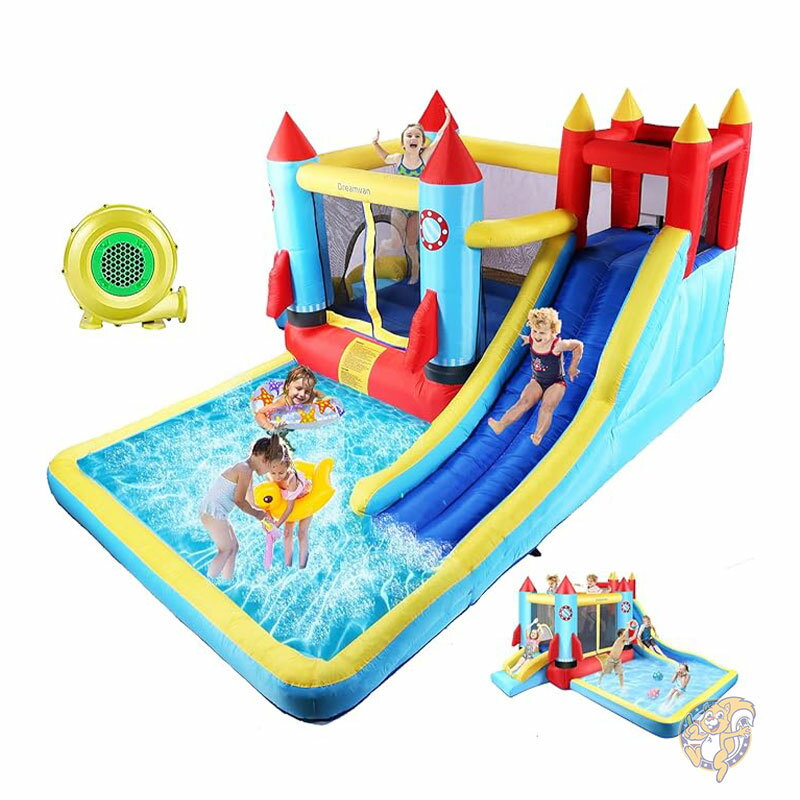 EDOSTORY Inflatable Water Slides Bounce House for Kids 大型プール インフレータブル ウォーターパーク 水遊び スライダー すべり台 滑り台 水鉄砲 送風機付き