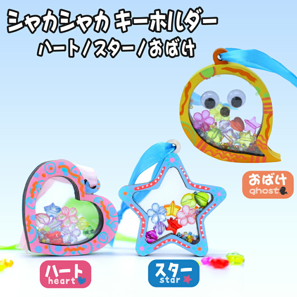 工作キット シャカシャカキーホルダー スター ハート おばけ 木工 工作 木製 木 手作りキーホルダー 工作キット 手作りキット 小学生工作キット 子供工作キット 子供手作りキット かわいい 冬休み 簡単 星 夏休み 小学校 小学生