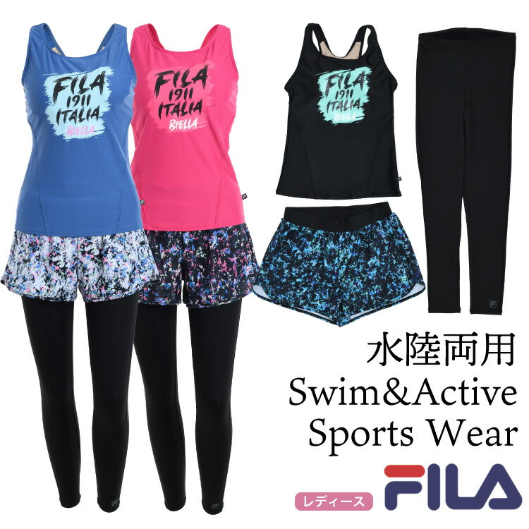 閉店セーノレ!FILA 水陸両用 フィットネス水着 レディース タンクトップパンツレギンス3点セット スイミング、ジム、ヨガ、ランニングなど フィラ