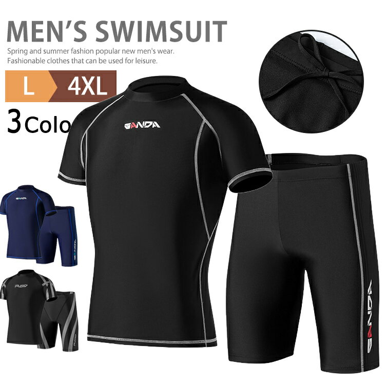 フィットネス水着 水着 メンズ ラッシュガード 上下セット 半袖 Tシャツ 競泳水着 サーフパンツ スイムウェア 水泳 体型カバー 日焼け防止 uvカット スイミング 海パンツ ジム スイムウェア セットアップ マリンスポーツ 練習用 水陸両用 夏用 父の日