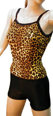 OUTLET価格!トップスのみの単品販売 パンツは付きません 【 L~LL サイズ 】【ブラック×イエロー】【縫込みパット】 少し大き目 フィットネス 水着 肩紐タイプ 水着 豹 柄 レディース スポーツ セパレート アクアビクス 水中ウォーキング 水中フィットネス ヨガ