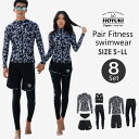 フィットネス水着 体型カバー レディース 5点セット 水着 メンズ 上下セット 長袖 ラッシュガード サーフパンツ セットアップ スイムウェア 3点セット 男性 タンキニ 女性 UVカット 日焼け防止 速乾 ストレッチ ペア バックシャン 切り替え 練習用 水泳 ジム プール リゾート