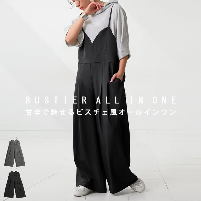 【半額クーポン対象】サロペット ビスチェ風 Iライン ワイド 美シルエット 華奢見せ スタイルアップ キレイめ 大人可愛い デート 旅行 レディース トレンド おしゃれ 2026春夏【asr303-801】【即納:1-5営業日】【送料無料】60込