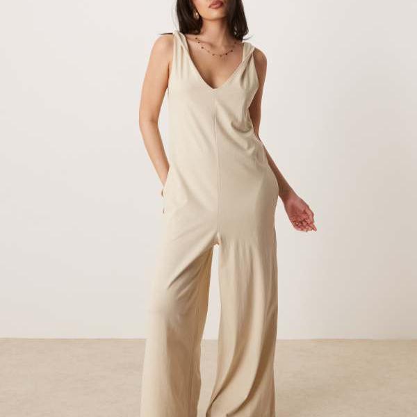 エイソス ASOS asos ASOS DESIGN ツイストショルダージャンプスーツ(ストーン) オールインワン レディース 女性 インポートブランド 小さいサイズから大きいサイズまで