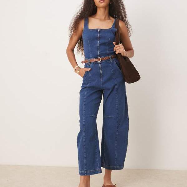 エイソス ASOS asos ASOS DESIGN スクエアネック デニムジャンプスーツ(インディゴ、バレルレッグ) オールインワン レディース 女性 インポートブランド 小さいサイズから大きいサイズまで