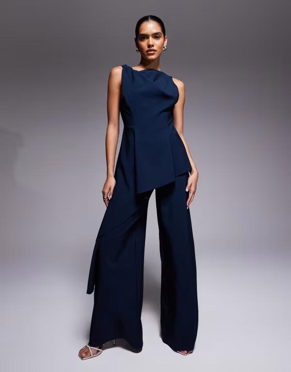 エイソス レディース トップス ジャンプスーツ ドレープ ASOS DESIGN twist shoulder draped jumpsuit NAVY ネイビー