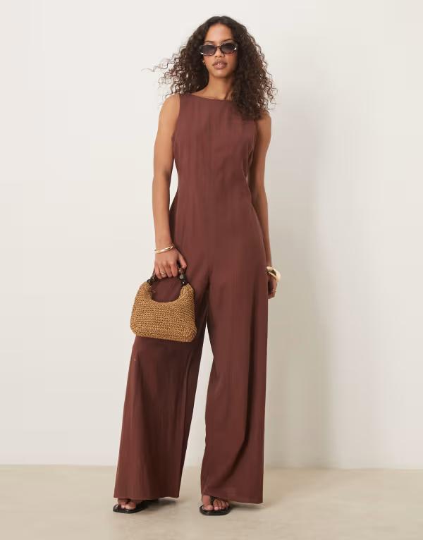 エイソス レディース トップス ジャンプスーツ ワイドレッグ ASOS DESIGN tennis seamed wide leg jumpsuit in chocolate CHOCOLATE BROWN ブラウン