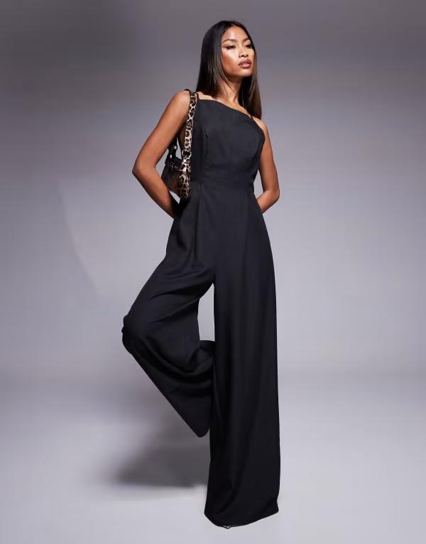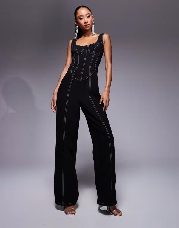 【送料無料】 エイソス レディース ジャンプスーツ トップス ASOS DESIGN topstitch corset detail structured jumpsuit in black Black