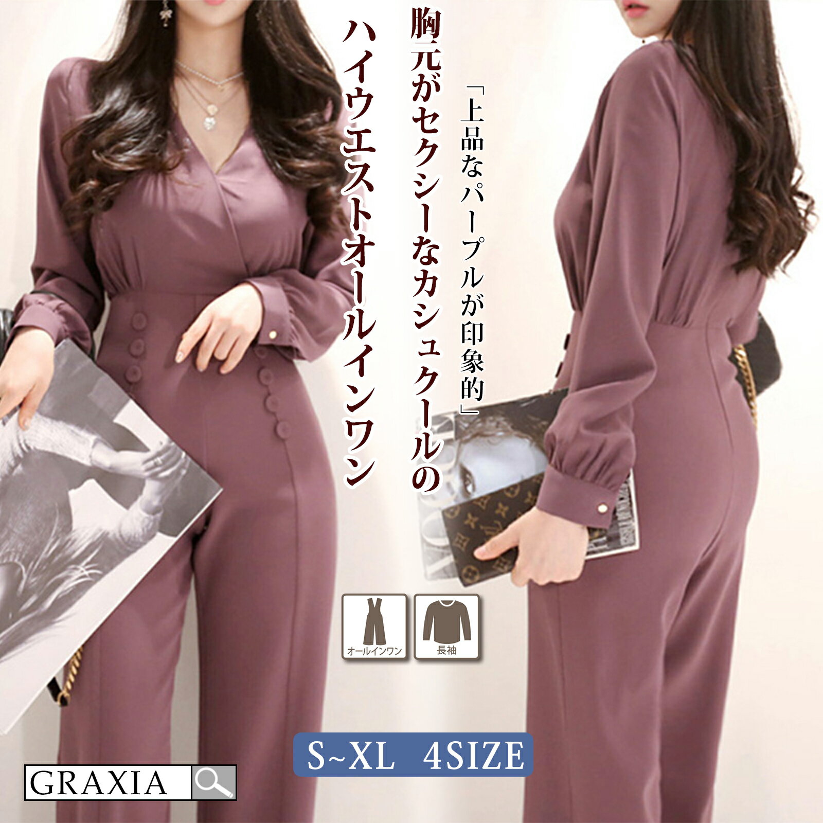 ■■商品情報■■パープル長袖シャツハイウエストオールインワン(キャバスーツ・CABARETSUIT)。胸元がセクシーなカシュクールにスタイルアップのハイウエスト、センターシームのストレートラインが細見えのオールインワンで、上品なパープルが印象的。インナーにハイネックやスクエアネックキャミなど合わせ露出を押さえれば、オフィスカジュアルとしても着用いただけます♪■■商品詳細■■カラーパープルサイズS、M、L、XLセット内容オールインワン 1点素材ポリエステル92%、ポリウレタン8%透け感★☆☆☆☆伸縮性★☆☆☆☆胸パッドなしストラップなし裏地なし生地の厚み薄いファスナーありポケットなし■商品画像と実際の商品の色味や仕様が異なる場合がございます。■商品には多少の糸ほつれ等がある場合が御座いますので予めご了承下さい。■■サイズ■■————————————————————スタッフによる素人採寸となりまして、平置きでの計測となります。サイズ表 / S / M / L / XL着丈 / 129cm / 130cm / 131cm / 132cm袖丈 / 58cm / 58cm / 59cm / 60cmバスト / 80cm / 84cm / 88cm / 92cmウエスト / 66cm / 72cm / 78cm / 80cmヒップ / 84cm / 86cm / 92cm / 96cm股下 / 64cm / 64cm / 65cm / 65cm【検索用ワード】キャバ キャバドレス キャバワンピ 韓国ドレス 韓国キャバドレス ミニドレス ミディアムドレス ロングドレス パーティードレス チャイナドレス ラウンジ キャバクラ キャバ嬢 GRAXIA グラシア 9999901