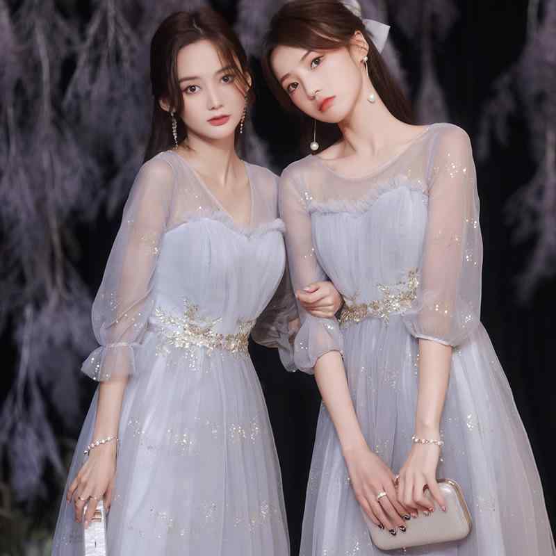 ドレス レディース ブライズメイド イブニング パーティー フォーマル ロング丈 スパンコール 合唱 演奏会 発表会 普段使い 二次会 エレガント 上品 グレー