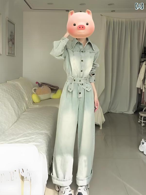 ジャンプスーツレディース レトロ 高級 デニムオーバーオール 女性用 2025 春 ハイウエスト スリム 長袖 ジャンプスーツ