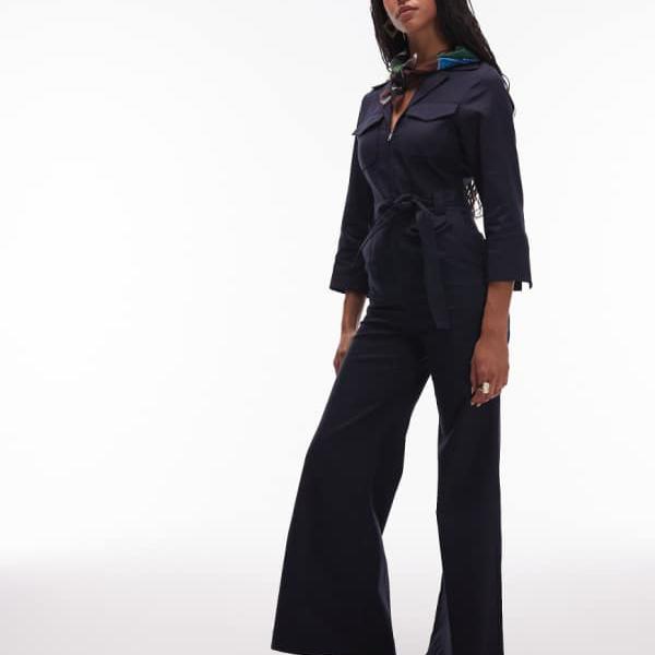 アンドアザーストーリーズ & Other Stories & Other Stories のベルト付きジャンプスーツ(パッチポケット付き、ネイビーブルー) オールインワン レディース 女性 インポートブランド 小さいサイズから大きいサイズまで