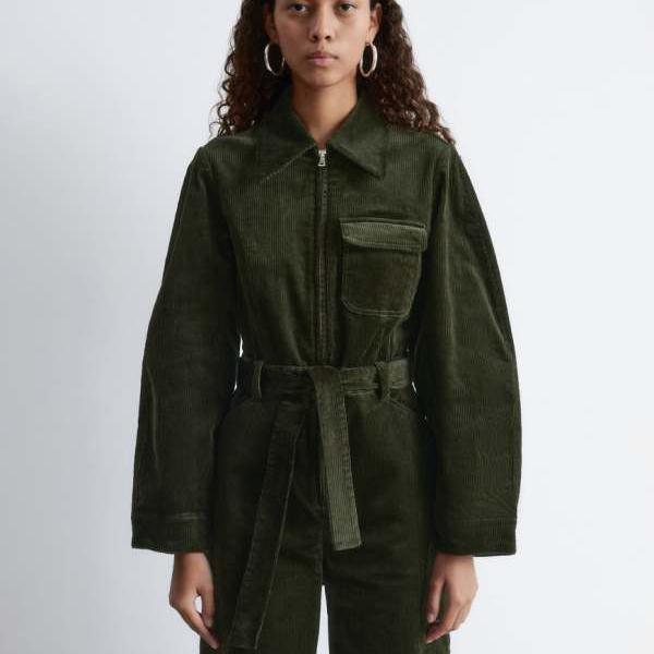 アンドアザーストーリーズ & Other Stories & Other Stories のベルト付きコーデュロイジャンプスーツ(ダークグリーン、ボリュームスリーブ) オールインワン レディース 女性 インポートブランド 小さいサイズから大きいサイズまで