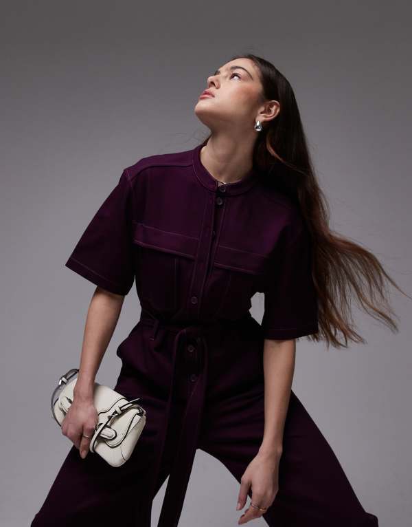 アンドアザーストーリーズ レディース トップス ジャンプスーツ ワイドレッグ & Other Stories wide leg stretch jumpsuit with tie waist and utility pockets in dark lilac Dark lilac ライラック