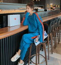 セットアップ レディース スウェット ジョガーパンツ ジャージ スポーツウェア プルオーバー 部屋着 ラウンジウェア ロング 長袖 ラウンドネック 上下 セット 2点 サイドライン シン 大人可愛い 韓国 オルチャン 個性的 デザイン おしゃれ