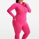 ヨガウェア レディース おしゃれ 大きいサイズ ハーフジップ 素肌感 タイト シルエット ダンス フィットネス オールインワン スポーツ 長袖