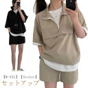 ショートパンツ セットアップ 半袖 スポーツウェア レディース トレーナー 韓国ファッション 5分袖 カジュアル 上下セット プルオーバー ハーフジップ トップス パーカー 夏 短パン ハーフジップ ストリート系 ダンス衣装 おしゃれ 重ね着