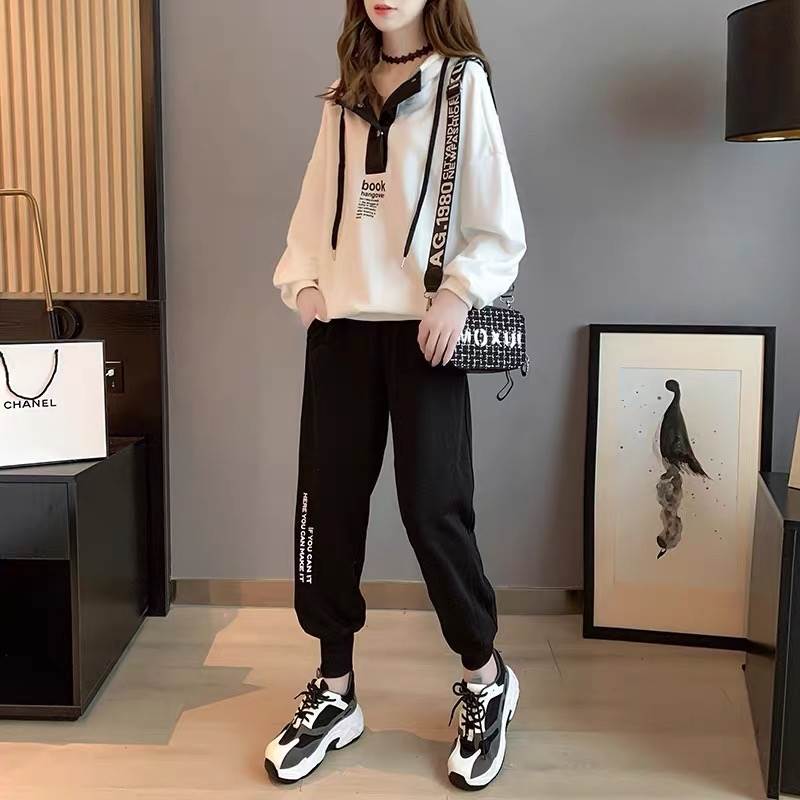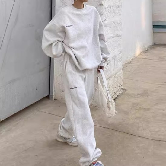 【セットアップ】フード付きセーター+ワイドレッグパンツ ツーピース スーツ スポーティー ルーズ シンプル. 3カラー a3435