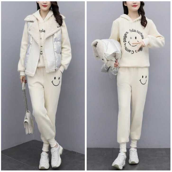 【取寄】セットアップ レディース 秋冬 40代 カジュアル トップス ボトムス パーカー 3点セット ジャージ スポーティー スリーピース 上下セット 長袖 フード付き フロントジッパー おしゃれ 大きいサイズ 3XL 楽ちん 部屋着 ルームウェア 黒 グレー カーキ アプリコット