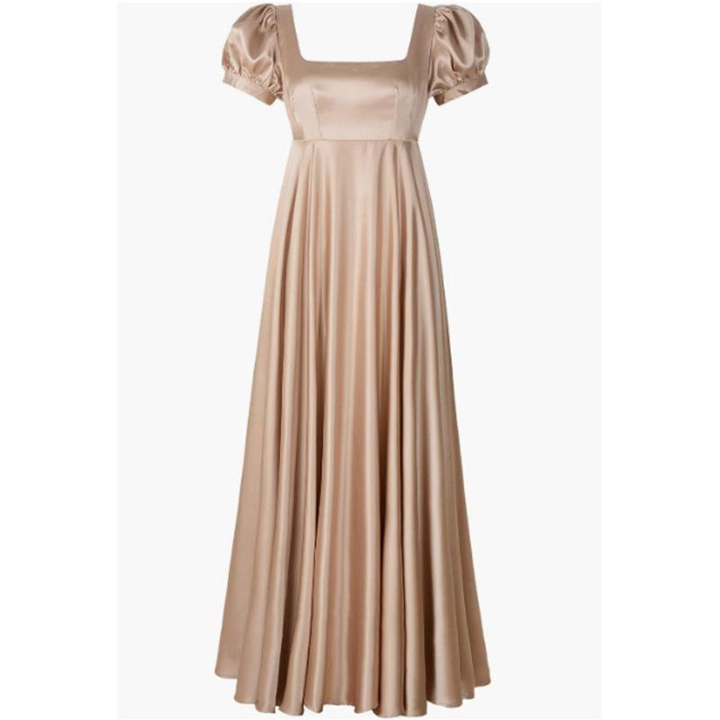 ドレス レディース サテン生地 結婚式 フォーマル パーティードレス ブライズメイド Aライン ロング丈 半袖 オフショルダー 二の腕カバー ハイウエスト 着痩せ スタイルアップ エレガント シンプル 韓国風 個性派 春夏