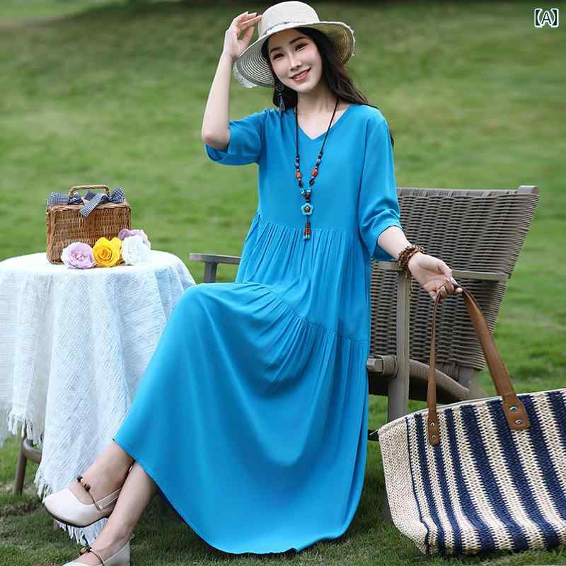 カラー ドレス エレガント コットンシルク ドレス 女性 2025 夏の 母親の カラフルな ドットの アウターウェア 人工 コットン ホリデー ビーチ