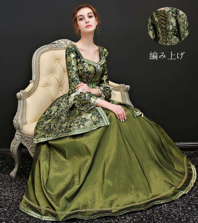 ロングドレス 中世ヨーロッパ ドレス サテン ロングドレス 大人 プリンセス 20代 30代 レディース コスチューム 衣装 貴族衣装 かわいい 仮装 パーティ 学園祭 文化祭 ad020m3m3jc