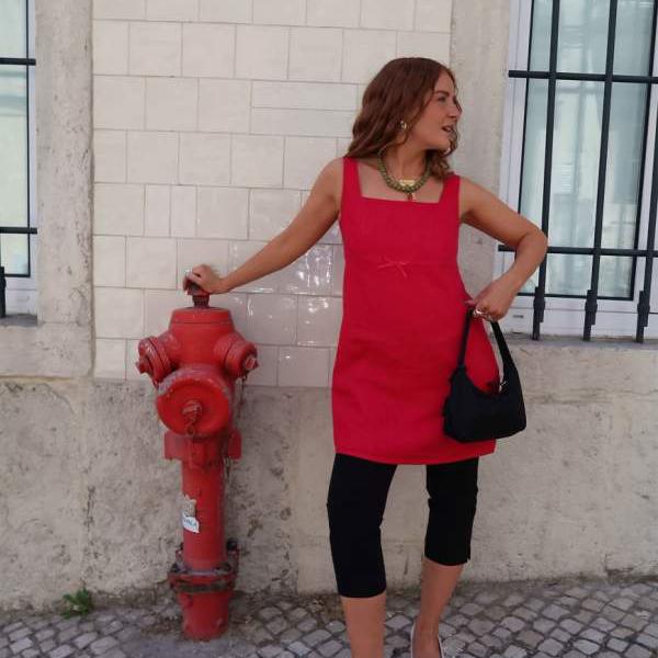 ラベルレール x レベッカ オリビア フィット リネン ミニドレス (レッド) ワンピース レディース 女性 インポートブランド 小さいサイズから大きいサイズまで