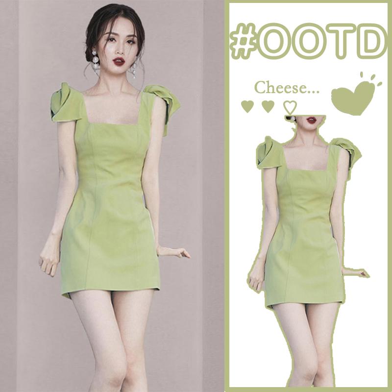 サスペンダー スカート サスペンダー スカート 同じ 大きい の 婦人服 カット ラベル テール シングル 小さい シャネル 弓 サスペンダー アボカド グリーン ドレス 夏