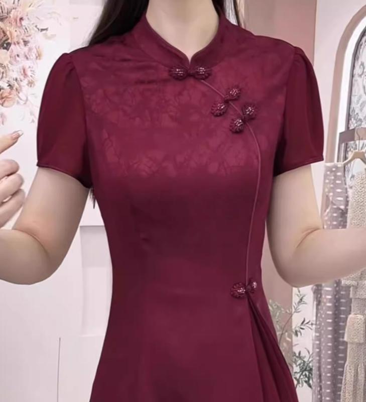 レディース ファッション 服 オシャレ カワイイ 女性用 シンプル 大人カワイイ 大きいサイズ 婦人服 ラベル 夏 チャイナ ドレス 半袖 ドレス