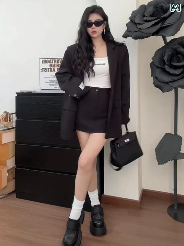 ドレス パーティー レディース 駅 春 ゆったり シルエット レジャー ラベル スーツ ジャケット ハイウエスト ヒップ スカート 女性