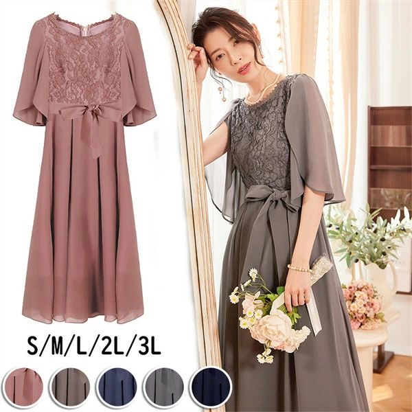 【今だけ!ドレスに真珠ネックレス付き】レース ワンピース ロング丈 ドレス レディース パーティードレス 結婚式 二次会 お呼ばれ 演奏会 袖あり 五分袖 体型カバー 大きいサイズ S-3L 上品 清楚 エレガント20代 30代 40代