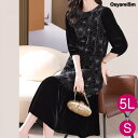 ベロア 花柄 ワンピース 入学式 卒業式 結婚式 フレアワンピース 袖あり 40代 母親 フォーマルドレス 50代 60代 30代 ミセス 親族 大人 フォーマルワンピース パーティードレス 大きいサイズ 春 秋 冬 長袖 ブラック セクシー セミフォーマル 顔合わせ お宮参り ドレス