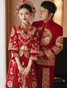 中華服 レディース メンズ 中国古典結婚式 新郎 新婦 衣裳上下2点セットアップ 七分袖 長袖 チャイナ服 ロング丈 プリーツ スカート 華やか お花 鳳凰 龍 刺繍 きらきら 中華衣装 チャイナ風結婚式 披露宴 花嫁衣装 華流 中華ドレス ワインレッド S~6XL