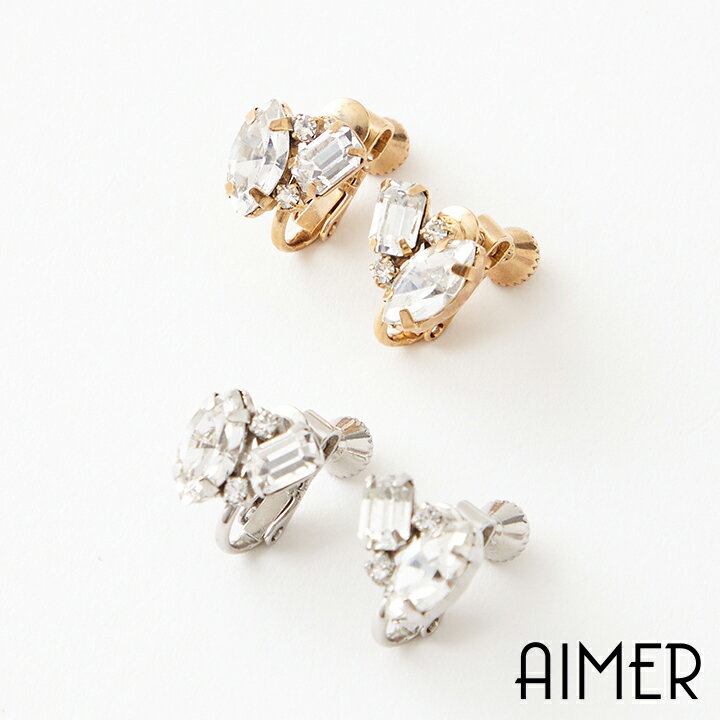 【スーパーSALE限定価格】【55%OFF】【SALE】スクエア×マーキスモチーフイヤリング【結婚式 パーティーアクセサリー フォーマル イヤリング リボンモチーフ エメ AIMER】