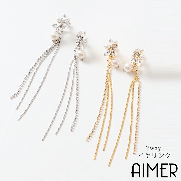 パールビジューイヤリング【結婚式アクセサリー パーティーアクセサリー ボリュームイヤリング 華やかイヤリング ドレス用イヤリング AIMER】