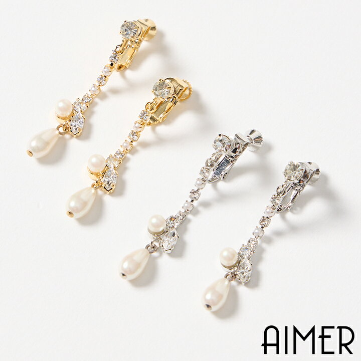 ツユ型パールイヤリング【結婚式 レディース フォーマル パーティー ジュエリー アクセサリー イヤリング シルバー ゴールド エメ AIMER】
