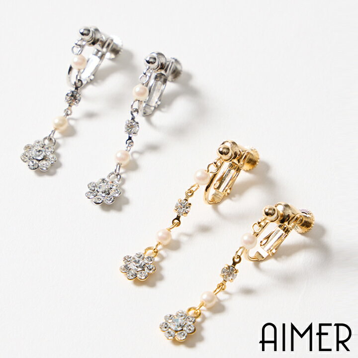 フラワーモチーフドロップイヤリング【結婚式 レディース フォーマル パーティー ジュエリー アクセサリー シルバー ゴールド AIMER 】