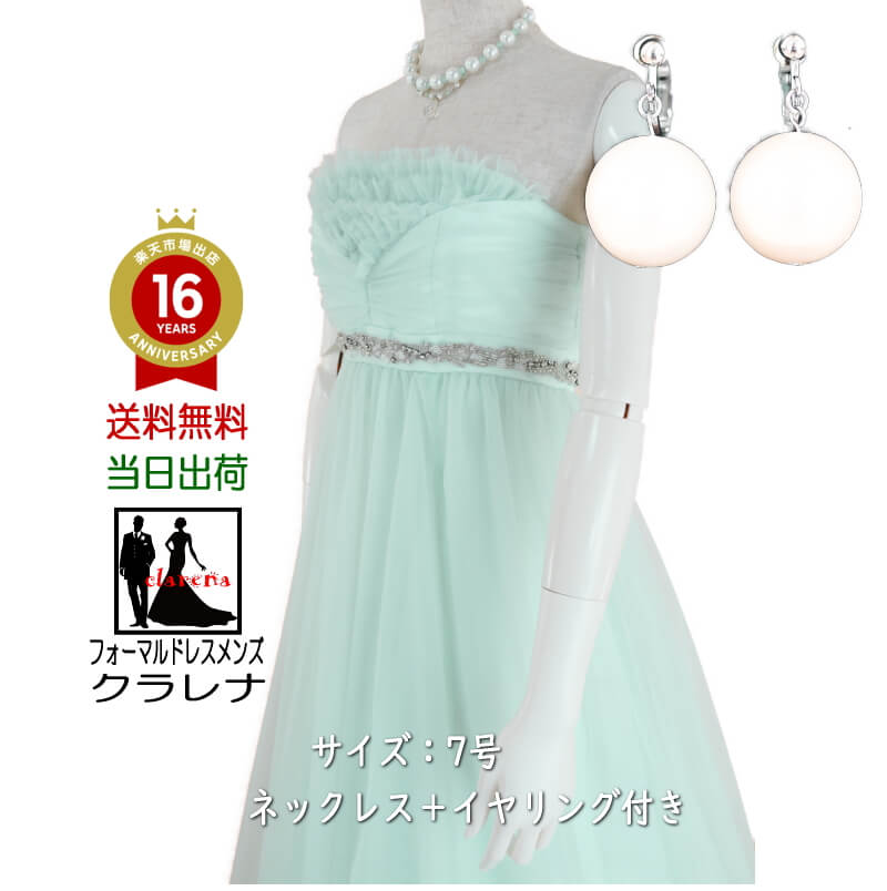 《フォーマル衣装》販売 クラレナの ネックレス イヤリング付き ペールグリーン ビーズ カラードレス 7号(CLC4557) 【中古】(USED品)