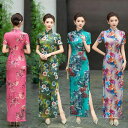 チャイナドレス マキシ丈 半袖 総柄 花柄 全7色 新作 ワンピース ドレス ハイネック スリット入り セクシー 中華ドレス 宴会 華流コスプレ チャイナ風 穏やかなチャイナワンピース シックな花柄 イベント 二次会 パーティードレス 演奏服 普段使い スリム 着痩せ おしゃれ