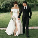 送料無料 ウェディングドレス 二次会ドレス 白 サテン ロングドレス オフショルダー スリット セクシー 結婚式ドレス 二次会 ホワイトドレス 無地 ウェディングドレス 海外挙式 撮影 XS S M L XL XXL XXXL