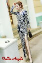 セレブ感漂うバロック柄デザイン ロングドレス キャバドレス ドレス セクシースリットデザイン ストレッチロングドレス
