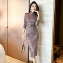 ワンピース ドレス スパンコール キラキラ レディース ロング丈 マキシ丈 袖あり 七分袖 五分袖 Vネック スリム タイト 細身 Aライン セクシー 色っぽ かわいい お洒落 エレガント エキゾチック 大人可愛い こなれ感 個性的 送料無料