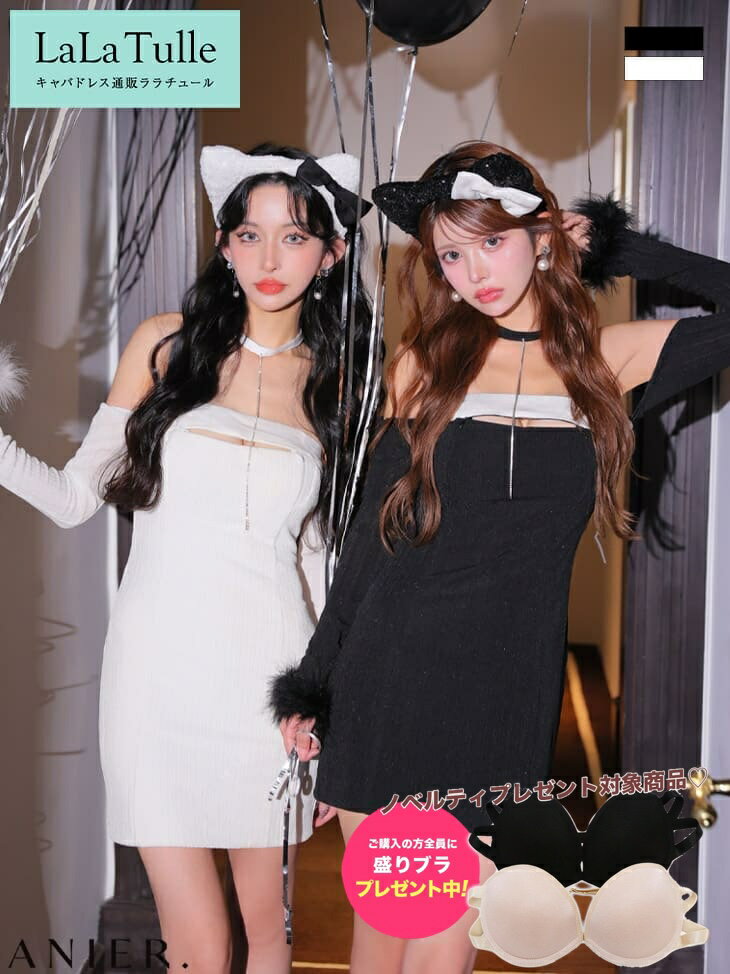 【今なら盛りブラプレゼント】anier ROBE. アニエルローブ 2way キャバドレス 猫 ねこ コスプレ ミニ タイト ワンピース XS〜Mサイズ ローブドフルール キャバ ドレス セクシー ハロウィン 猫耳 カチューシャ ミニドレス キャバ嬢 袖あり 白 かわいい 送料無料 anier4052