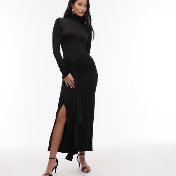 アンドアザーストーリーズ & Other Stories & Other Storiesのハイネックとドレープシームディテールのマキシドレス(ブラック) ワンピース レディース 女性 インポートブランド 小さいサイズから大きいサイズまで