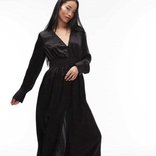 アンドアザーストーリーズ & Other Stories & Other Stories 深めのVネック、袖口ディテールのブラックミディドレス ワンピース レディース 女性 インポートブランド 小さいサイズから大きいサイズまで