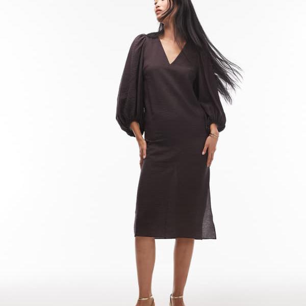 アンドアザーストーリーズ & Other Stories & Other Storiesのボリュームスリーブミディドレス(ブラウン) ワンピース レディース 女性 インポートブランド 小さいサイズから大きいサイズまで